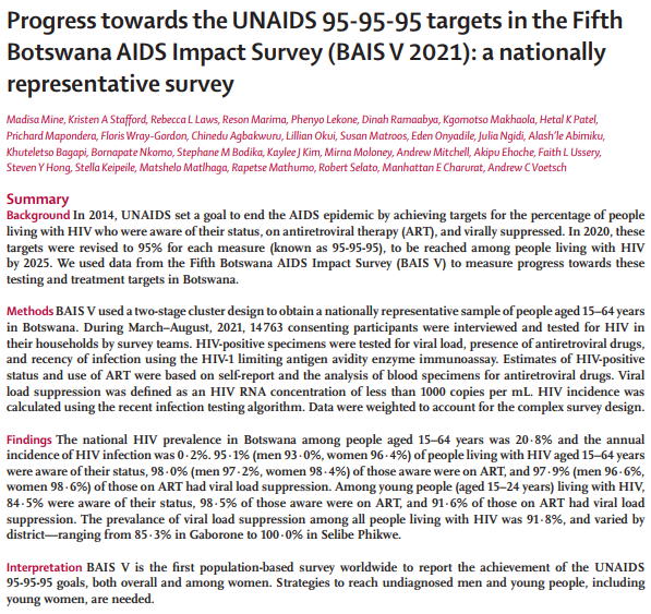 Progress towards the UNAIDS 95-95-95 targets in the Fifth Botswana AIDS Impact Survey (BAIS V 2021): a nationally representative survey